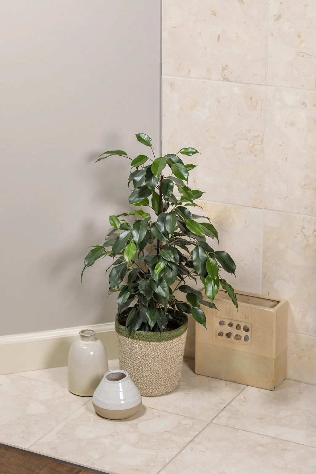‘Danielle’ is another Ficus benjamina in the Cling-On collection, that has been bred to have leaves that resist dropping; they literally cling to this ficus. ‘Danielle’ can be grown as a small tree, or as an elegant multi-stemmed plant with a bushy habit. She has slender, arching branches that hold gorgeous, dark green leaves. In order to keep your ‘Danielle’ looking her best, she needs to be given plenty of bright light, such as can be found in an east- or west-facing window. A southern exposure would also be ideal.