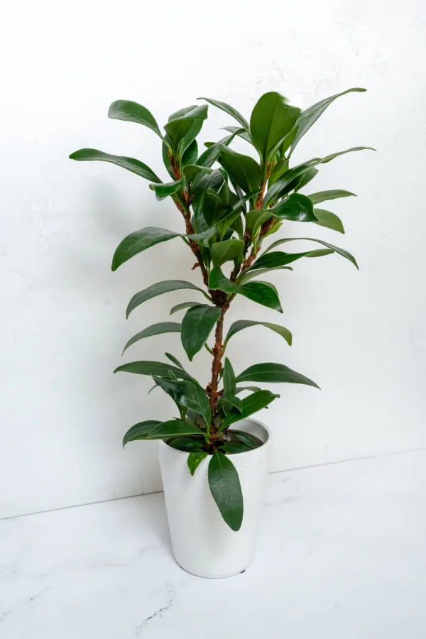 Introducing Cling-On® ‘Mini Zen’, the space-saving counterpart to the classic African Fig. This compact version brings a touch of tranquility into any room, no matter how small, making it perfect for creating your own sanctuary. With glossy, dark green leaves that cling elegantly to its branches, ‘Mini Zen’ has earned its place in the Cling-On® collection. Over time, as ‘Mini Zen’ grows, its branches develop textured, exfoliating bark like that of a birch tree–a nod to its nickname, the “Birchbark Fig”. Unlike other, more high maintenance ficuses, ‘Mini Zen’ is also more forgiving of average home conditions, making it an ideal choice for those seeking more peace in their plant care regimen.
