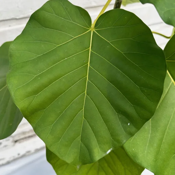 Ficus umbellata is a tropical houseplant that is known for their leaf shape and vibrant green colors. Ficus umbellata is very similar to a Fiddle Leaf Fig Tree (Ficus lyrata), and care is the same. To care for these plants, keep their soil moist by gently watering a couple times a week. These plants need to be kept in a bright-light location inside, out of direct sunlight.