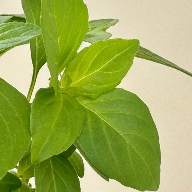 Mrs. Burns Lemon Basil is an heirloom cultivar of Sweet Basil, which when compared to Lemon Basil (a different species of Basil), in Mrs. Burns lemon basil the lemon flavor is more intense, the leaves are larger, and the plant itself is more robust. It has the strongest lemon scent and flavor of all the lemon basils, and also has undertones of cinnamon and mint and hints of spice along with a strong floral note. Slow-bolting, but the flowers should be pinched to prevent the leaves from becoming bitter. Mrs. Burns lemon basil can be repeatedly harvested by taking a few leaves at a time and should be harvested periodically to encourage regrowth.