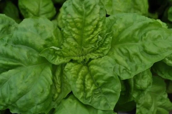 A compact and flavorful basil variety with very large, light-green, crinkly leaves that have a strong fragrance and a spicy flavor. Adds a classic basil taste to culinary creations. Brings both culinary delight and visual appeal to herb gardens and kitchen settings.