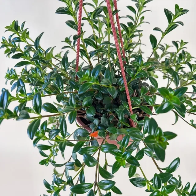 The Goldfish Plant has glossy green leaves and puffy orange flowers that resemble goldfish. Grow in a bright location for maximum flowering. Plants prefer summer temperatures in the upper 60’s to low 70’s and a bit cooler in the winter. Cooler temperatures and slightly drier soil in the winter helps stimulate flowering.
