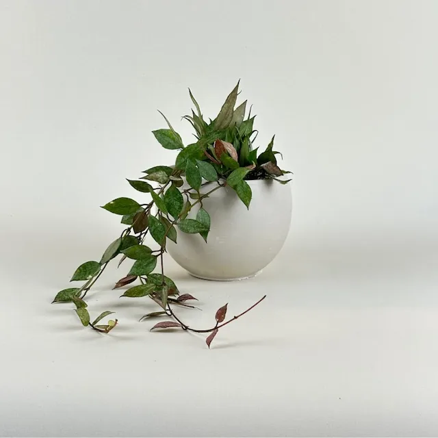 ‘Autumn Blush’ has petite, lanceolate leaves that blush in the warm, rosy tones of autumn if given adequate light. You’ll fall even harder for ‘Autumn Blush’ when it blooms, as its creamy white flowers emit a spicy, cinnamon-like fragrance, filling your space with a cozy, warm scent, perfect for a crisp fall day.