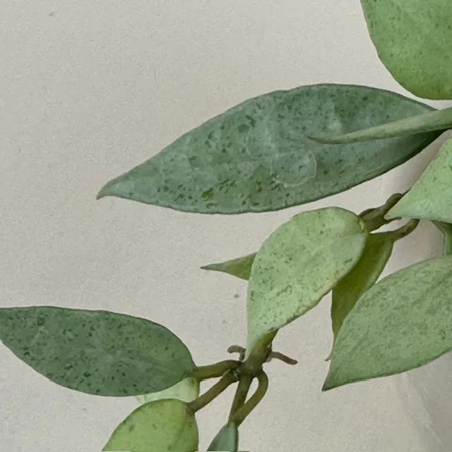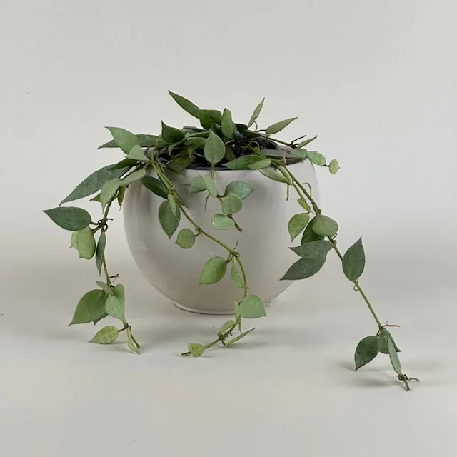 Hoya lacunosa ‘Misty Morning’ is a wax vine with silvery, seafoam green leaves, reminiscent of the ocean on a foggy day. This charming plant sends out cascades of petite, almond-shaped leaves that exhibit occasional specks of darker green. Also known as the “Cinnamon Hoya”, when this plant blooms, it has umbels of spicy-scented, cream-colored blooms. ‘Misty Morning’ will awaken your senses with both its looks and sweet fragrance.