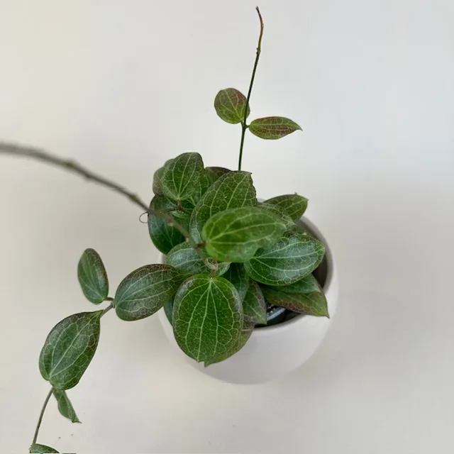 Straight from the Philippine Islands is a variety of wax vine known as ‘Teacup Anemone’. This variety of Hoya sends out dainty vines of medium green leaves with contrasting light-colored veining. On rare occasions, when ‘Teacup Anemone’ blooms, you will be greeted with clusters of waxy pink flowers that look like miniature sea anemones. When your ‘Teacup Anemone’ is done blooming, however, be careful not to cut away the spent flower spurs, as this variety of hoya blooms on old spurs. Like other epiphytic plants, this hoya prefers to dry out in between waterings.