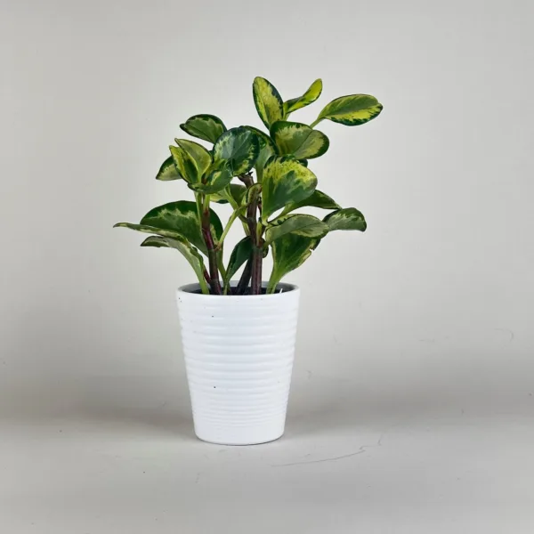 For optimal performance, keep your Peperomia at 60-85°F (15-29°C). Peperomias prefer to be grown in medium to bright, indirect light. They may tolerate lower light, but will not grow as fast or have variegation that is as vivid. Direct sunlight can lead to leaf scorch. If your Peperomia is getting leggy or leaning to one side, it is stretching for more light. Move it to a brighter location and rotate your plant regularly to ensure even light distribution, and even growth. Peperomias aren’t all that fussy when it comes to humidity, but varieties with thinner, less succulent leaves may benefit from higher humidity. This succulent-like Peperomia prefers to dry out in between waterings. Water when the top 1-2 inches of soil are dry.
