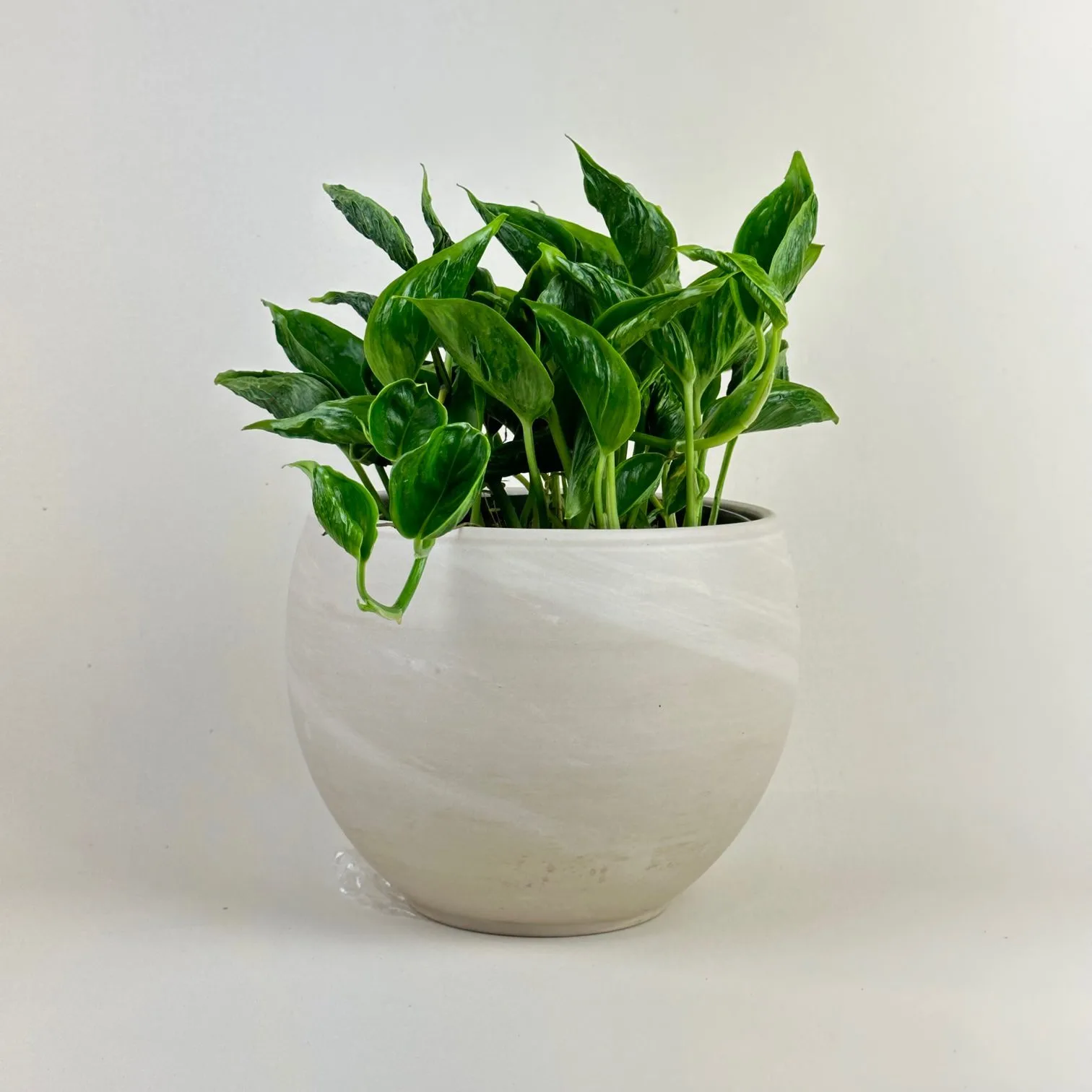 Pothos ‘Shangri La’ is a mutated form of the common and well-known Golden Pothos. The green leaves are highly contorted with hints of yellow variegation. Adaptable to lower light conditions but it will grow best in bright, indirect light. Allow the soil to dry out almost completely between waterings.