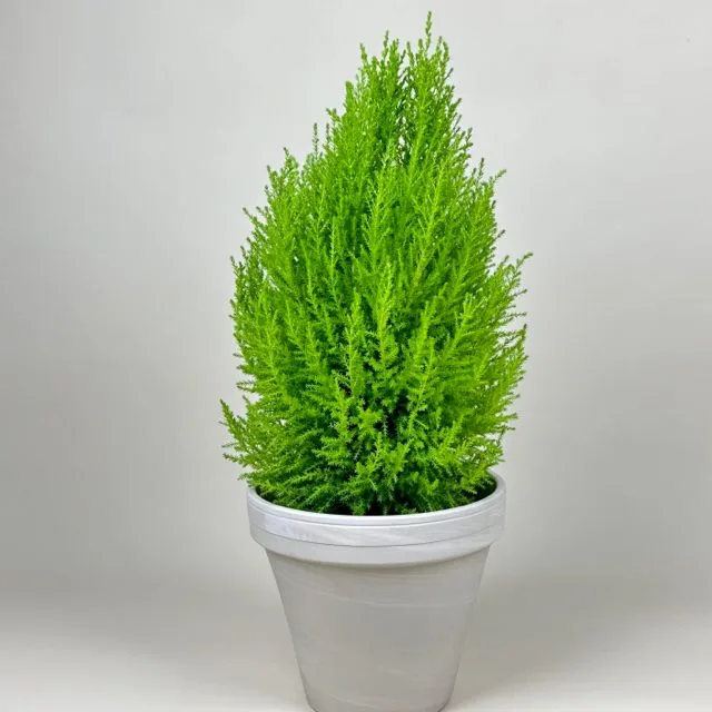 The Lemon Cypress is a species native to Italy and California that will do well indoor for the winter months, adding the fresh scent of lemon any time you brush up against the needles. It will need to be situated near a bright window to receieve as much sunlight as possible through the winter months, then it can be placed outside after all chance of frost has passed. Water only when the soil feels dry to the touch.