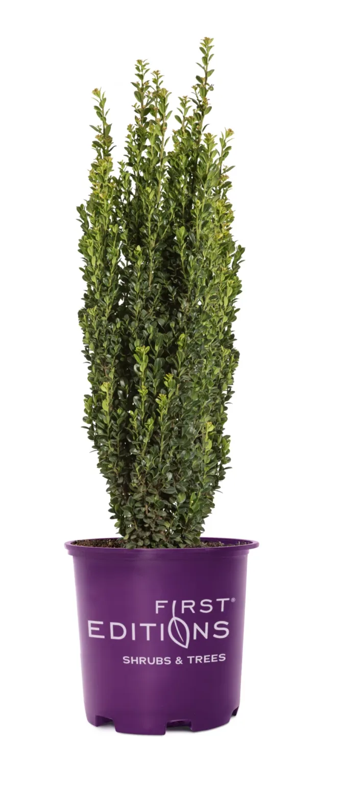 ‘Straight & Narrow Japanese Holly is a strong, columnar, evergreen shrub that grows 6’ tall and 2-3’ wide; it is an obvious improvement from other cultivars on the market whose branches tend to splay out as they age. ‘Straight & Narrow has strong branches that remain tightly upright as it ages and faces the elements. Shiny, dark green leaves are flat, not cupped, and remain nice looking through winter. Best in full or partial sun.