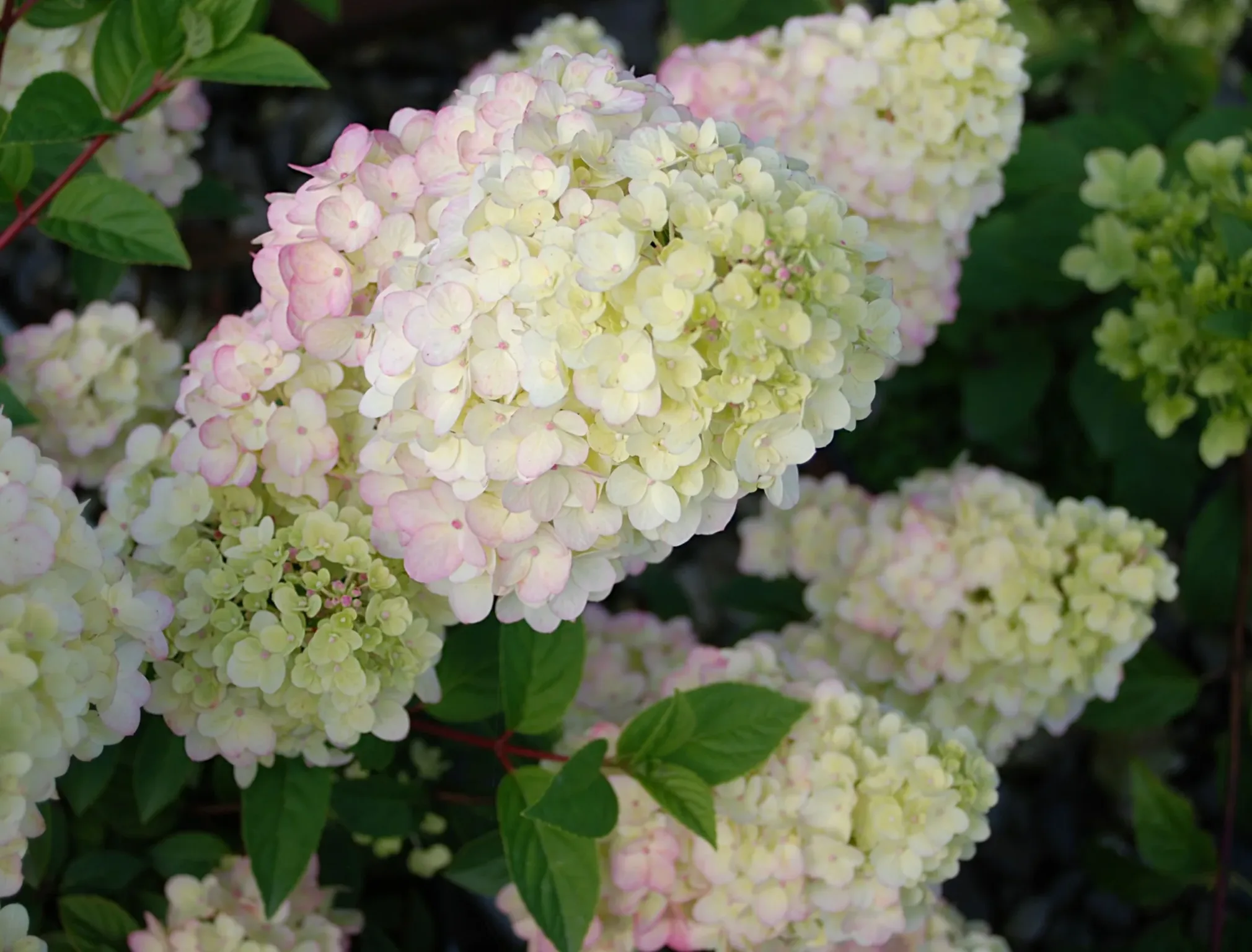 The enormous flower panicles emerge creamy white in mid summer, change to pink and finally to strawberry red. Red flower color persists for at least 3-4 weeks. Very similar to Vanilla Strawberry; just smaller in stature.