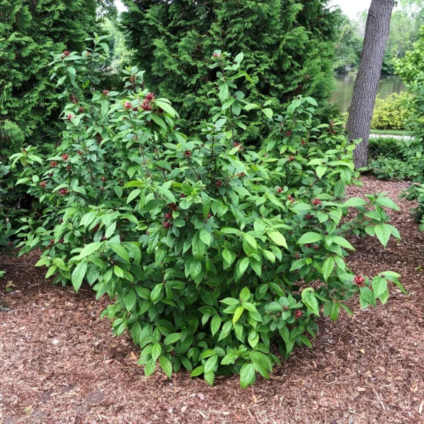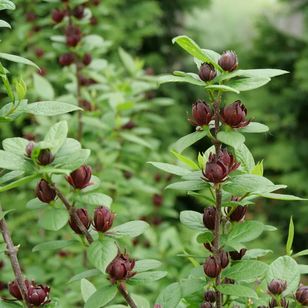 The nicest smelling native on the market! Simply Scentsational calycanthus is the result of thousands of sniffs and we’re proud to say this is the most intriguing scent you’ll find in any garden. Debate amongst your friends and relatives whether it’s melon, banana, strawberry, or even Juicy Fruit gum that your nose is picking up. And while you’re at it, you can admire its gorgeous velvety magnolia-like flowers. A unique native shrub to add to any garden, it is also deer resistant! The large green leaves add a tropical feel to the plant as well. Best in full sun, but will tolerate some shade too!