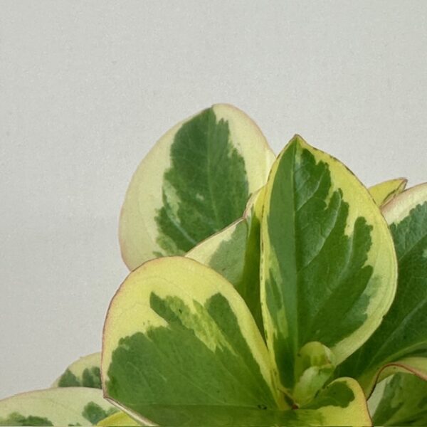 Introducing ‘Sweet & Sour,’ an upright peperomia that is sure to be a delightful treat in any space! This baby rubber plant has glossy, spoon-shaped, fleshy leaves with creamy margins and marbled green centers. There is also a dash of pinkish-red highlighting, making ‘Sweet & Sour’ even more delectable! Over time, the upright stems of this peperomia may develop a trailing habit, ideal for spilling out of a container or hanging basket.