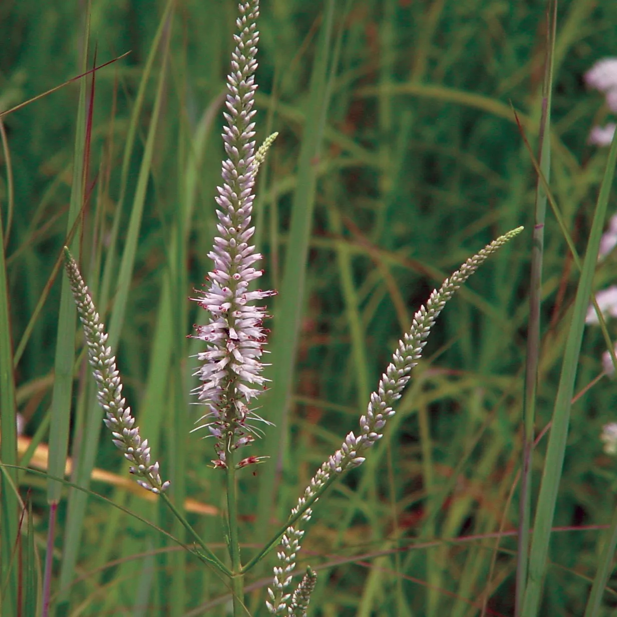 Culver’s Root is a tall, graceful perennial with slender flower spikes densely packed with small white flowers in summer. Butterflies and other pollinators value the flowers for nectar. The tall stems provide good winter cover for all kinds of hibernating insect wildlife.