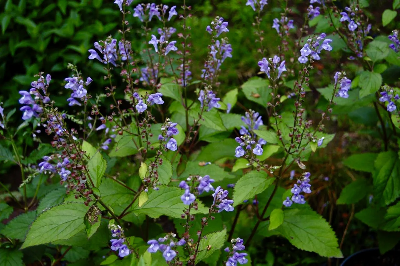 Little known but a flat-out landscape performer, the deep green, lustrous foliage of this selection forms a spreading mound in the landscape. Numerous stems rise above the foliage in early summer lined with purplish-blue, skull-capped flowers that bloom for up to 8 weeks. An adaptable color machine!