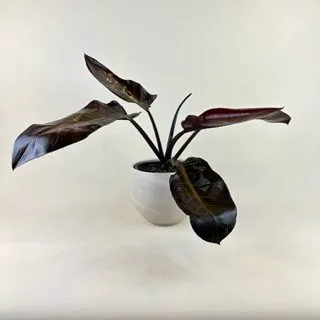 Philodendron ‘Cathaline’ is a colorful aroid that pushes out foliage in wide ranges of reds and greens. Bright, indirect light is best for the most colorful leaves but be sure to keep out of direct sun, as it can burn the leaves. Water when the top two inches of soil feels dry to the touch. Be sure to not overwater. Soggy soil can cause root rot.