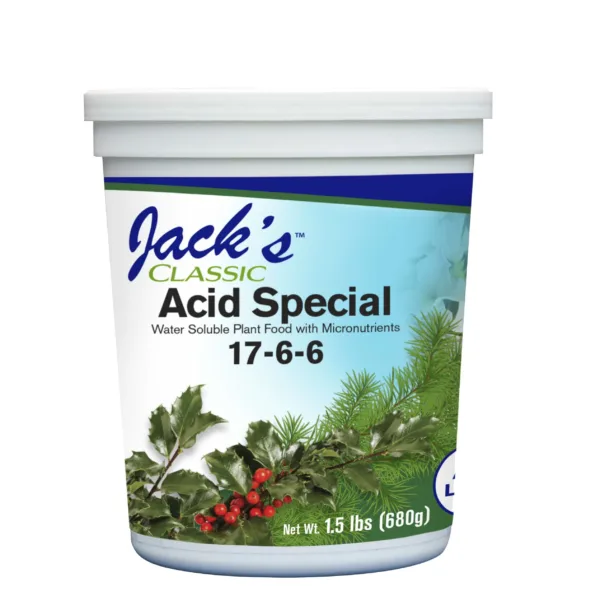 Acid Special 17-6-6 helps to reduce soil pH which allows your plants to better utilize iron and other trace elements for overall plant growth. Perfect for greening up all acid loving garden and houseplants including: Azaleas, camellias, rhododendrons, hydrangeas, blueberries and citrus. Acid Special is best used as a root drench–especially for plantings next to concrete foundations of the home or other areas where soil pH may be elevated. This product will promote lush vegetative growth and better blooms through its enhanced nutrient package, which includes elevated levels of iron and sulfur.