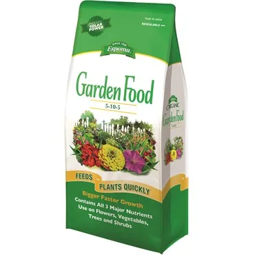 Espoma Garden Food 5-10-5 is an agricultural grade all-purpose fertilizer. It provides the three major plant nutrients: nitrogen, phosphorus & potassium. Like all Espoma plant foods, no sludges or fillers are ever used.