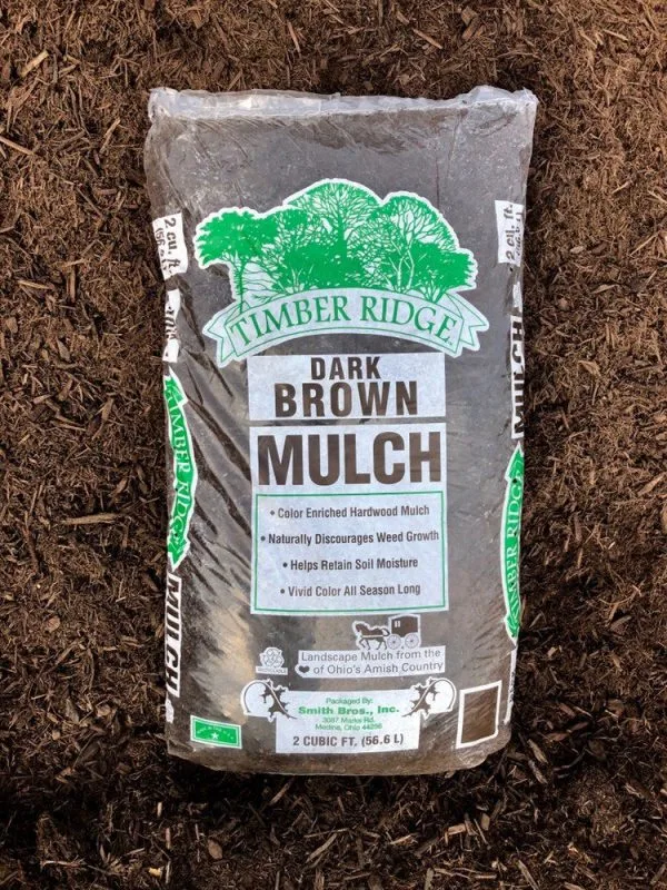 Timber Ridge® is a double processed WOOD mulch that is enriched with a brown colorant. This milk chocolate brown mulch breaks down slower than bark, so it lasts longer in your flower beds. When applied with the proper drying time, this mulch will resist fading and add brilliance to your landscape setting.