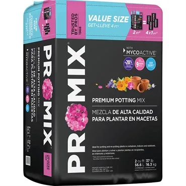 Pro-Mix Premium Potting Mix is ideal for all potting and re-potting plants in containers and ideal for seed starting applications. Contains a slow release fertilizer that feeds for up to 9 months. It si s formulated with a water-saving gel to hold extra water.