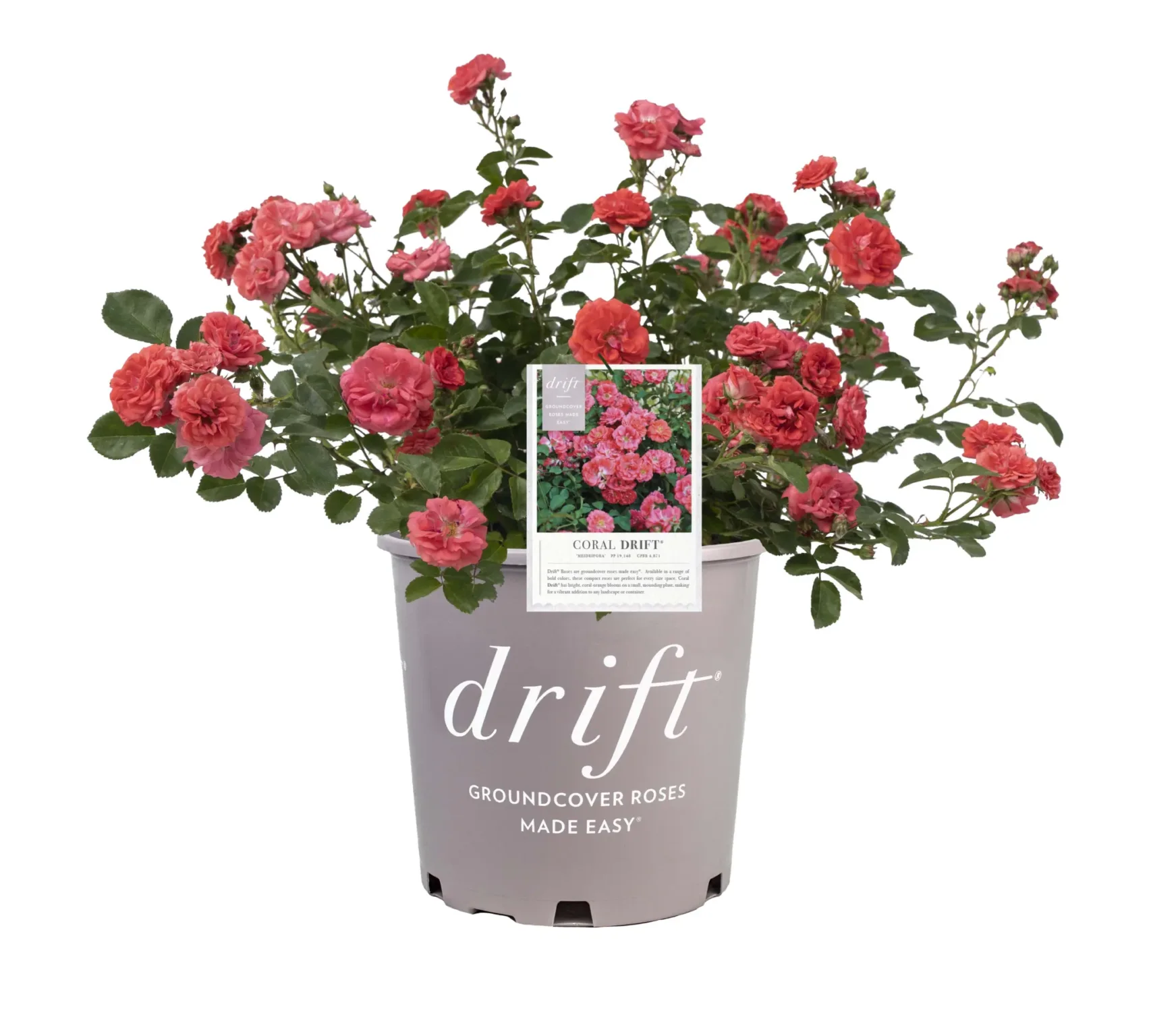 Bright coral-orange blooms cover this small mounding shrub from mid Spring to mid Fall. Coral Drift® has the most vibrant flowers that catch your eye from anywhere. Mix and match with similar or contrasting colors to really wow. Fully Winter hardy and disease resistant. Perfect for small gardens, hillsides, perennial beds and even awkward areas. They brighten up borders, fill in empty spaces, and spread delicately around your favorite established plants.