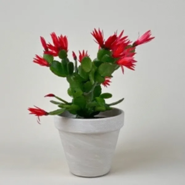 The Spring Cactus plant (also known as Easter Cactus) comes in a variety of bloom colors. ranging from white to red, orange, peach, lavender and pink. Even following its bloom, the plant has an interesting appeal in its unusual shape. The segments are added onto by new growth, creating a rickety stacked appearance. The plant doesn’t have the same spines as a desert cactus, but a more undulating form with softer pointed nodes on the edges of the leaves. These plants perform best in bright light, but not direct sunlight. Unlike desert cacti, they need cooler temperatures, even during the day, and will bloom for months in nighttime temperatures of 55 to 60 degrees. Keep the soil lightly moist and allow it to dry out before watering again. Good Easter cactus care means repotting the plant every two years in spring. The plants enjoy being pot bound, but give it new soil and return the plant to the same pot.