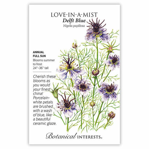Delft Blue’ is named after a famous type of white and blue pottery produced in the Netherlands since the 17th century. This drought tolerant, easy-to-grow flower is dual-colored with rich, violet-blue atop snowy white petals and burgundy stamen. Perfect for borders to attract pollinators, or in cut flower gardens to add an airy, sculptural flair to bouquets. When flowers fade and the deep purple, lantern-like seed pods form, add them to dried floral arrangements for a charming contrast.