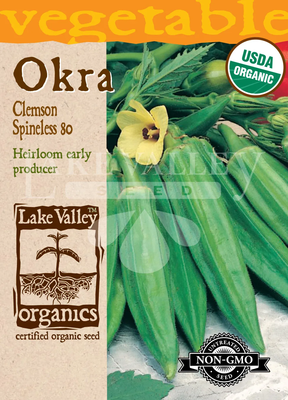 Okra Clemson Spineless 80 Organic Seed Pack LV