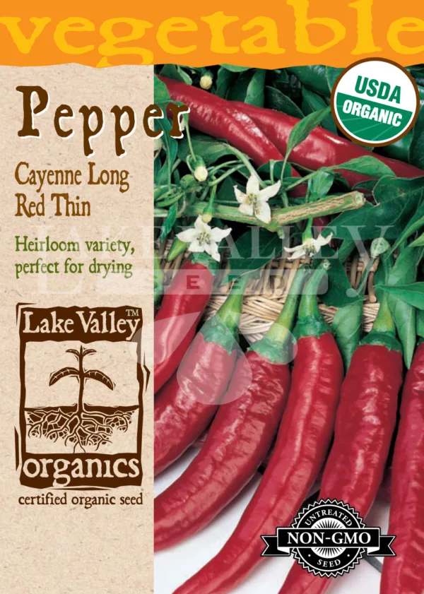 Pepper Hot Cayenne Long Red Thin Organic Seed Pack LV