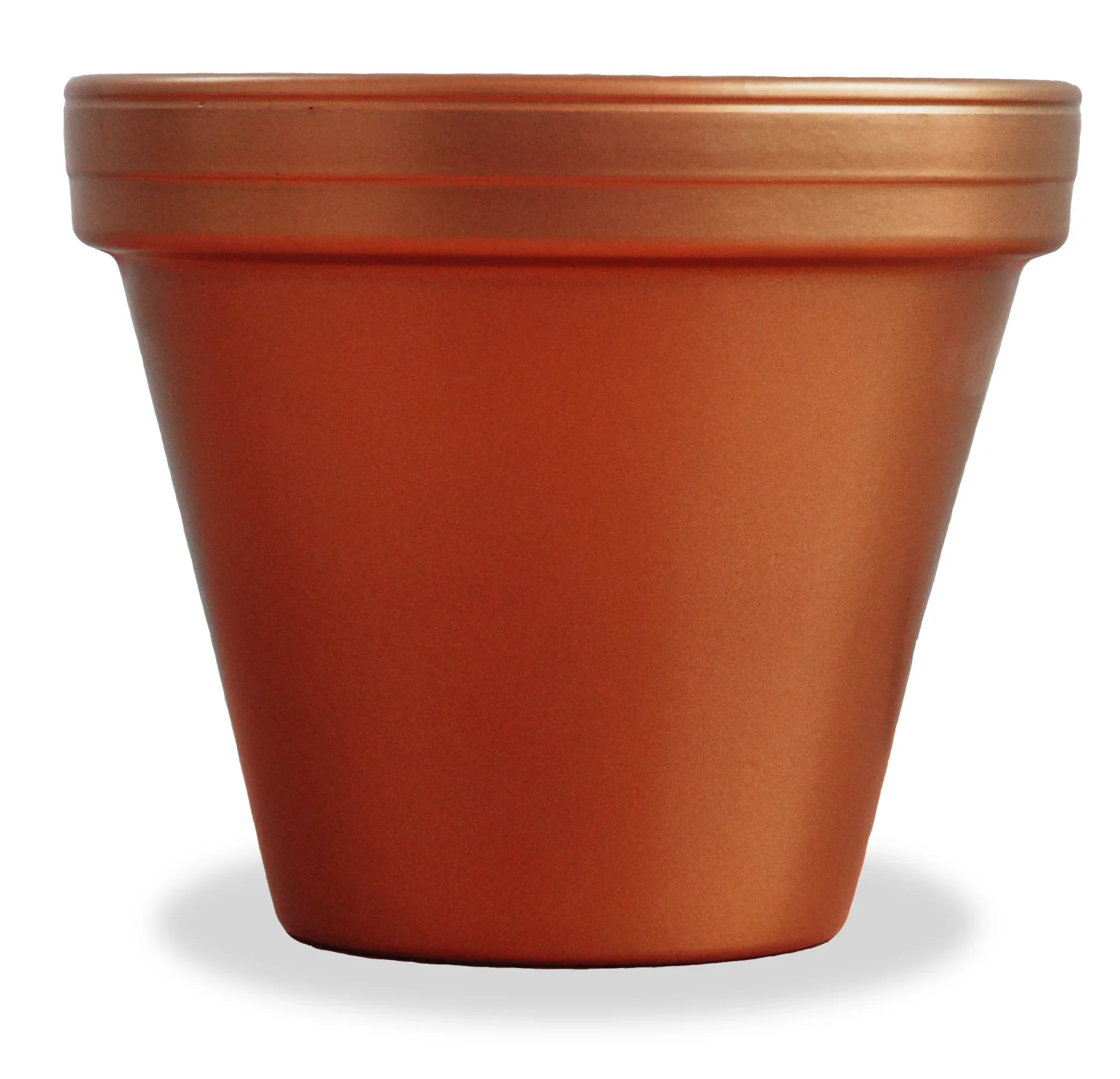 These standard clay pots have been powder-coated with a Copper finish. Available in 4″, 6″, and 8″ sizes. Don’t forget to add the matching saucers, sold separately!