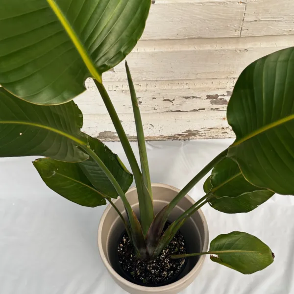This large, upright plant adds a rich, tropical flair to your space as its glossy, banana-shaped leaves fan out. It is relatively hardy and adapts to a wide spectrum of light conditions from direct sun to low, indirect light, but will flourish in a sunny spot. Water and humidity are important to keep your Bird of Paradise healthy. It needs consistent watering to keep the soil moist, but never wet or soggy. In addition to careful watering, it will benefit from regular misting to boost its humidity. When grown indoors, there will not be enough light to trigger the plant to produce a bloom. However, the majestic foliage and graceful stems make a statement on their own.